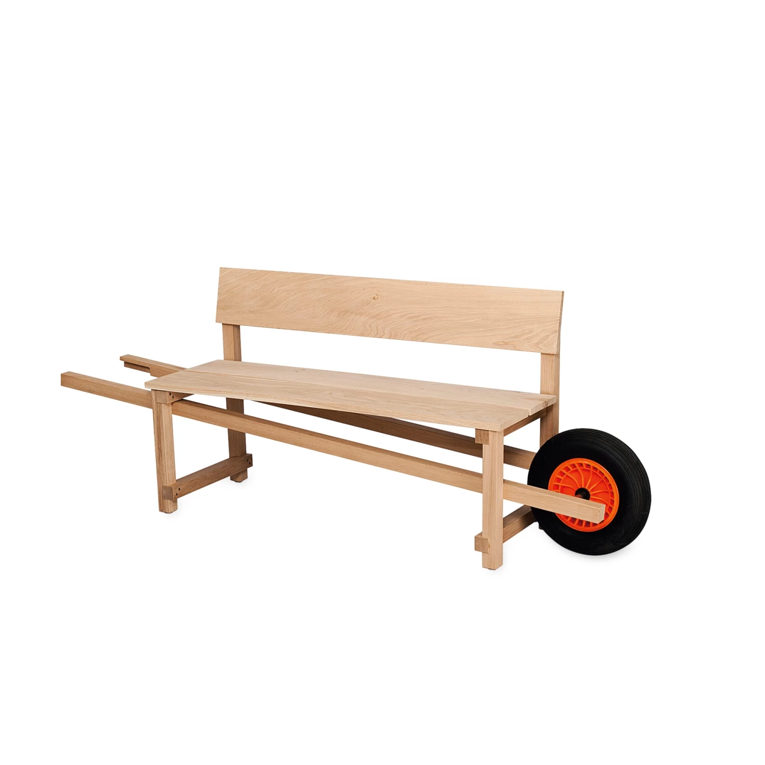 Een echt actief buitenmeubel: zijn kruiwagenwiel zet automatisch aan tot verandering van plaats. In de zon of in de schaduw – WHEELBENCH kan gemakkelijk door één persoon naar een andere plaats worden gebracht. Dankzij de vervaardiging in massief eikenhout zal de bank vele jaren van buitengebruik overleven. Gedemonteerde levering.