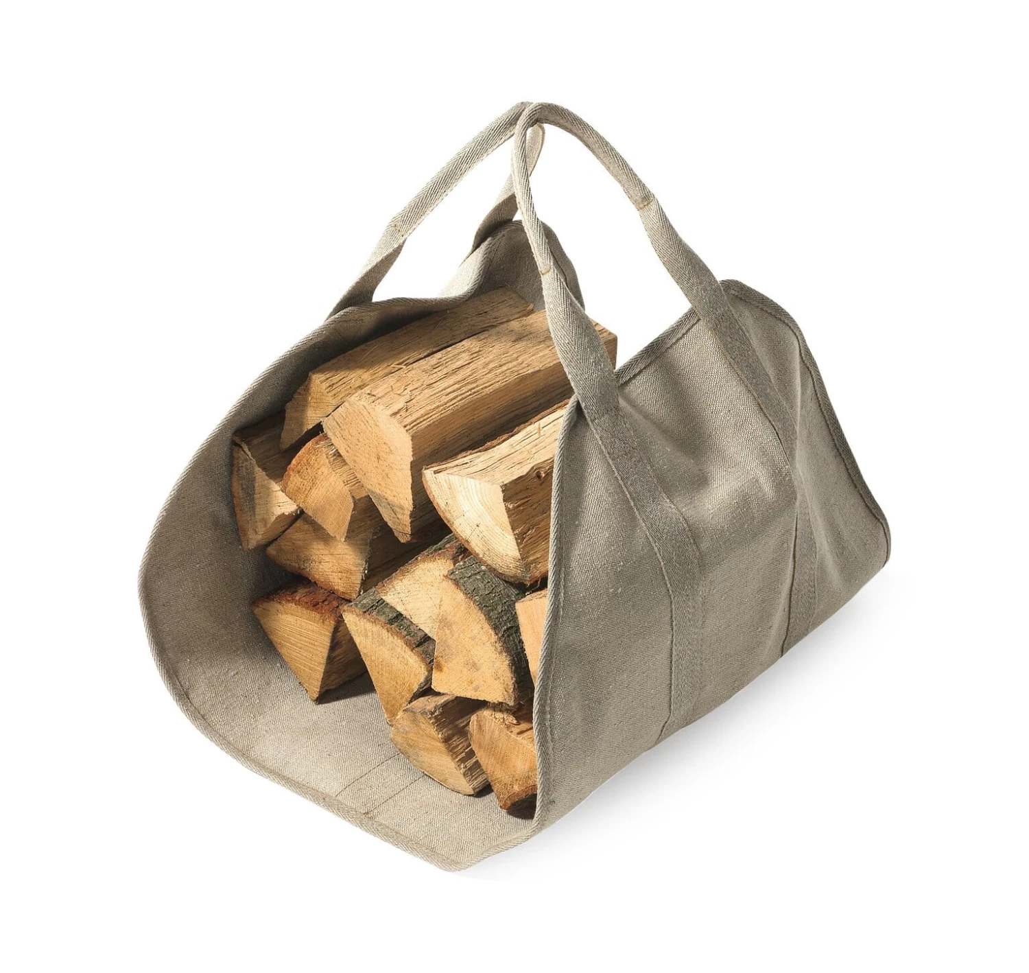 Een draagtas voor brandhout. Gemaakt van zuiver linnen