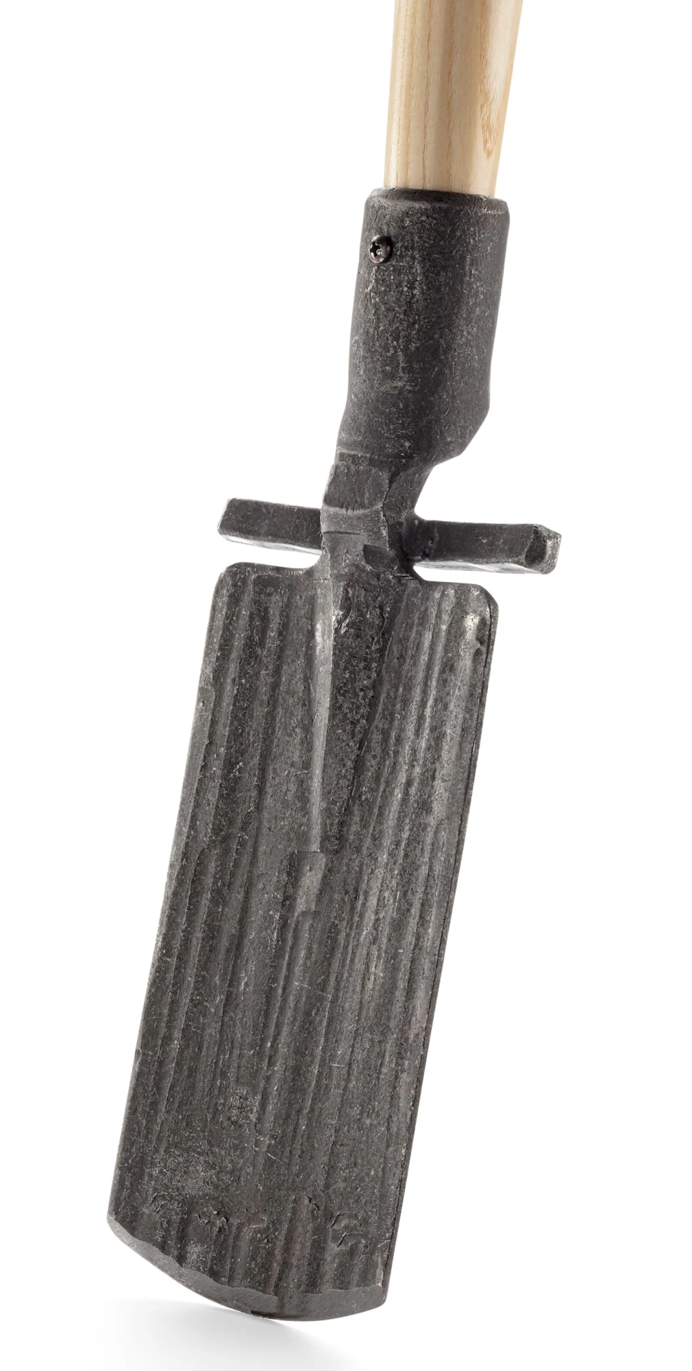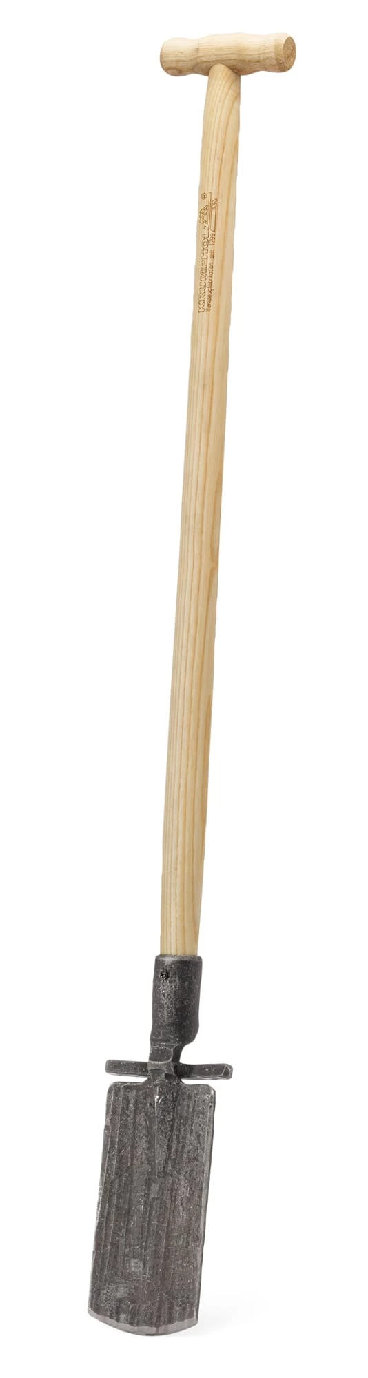 Het is een oude traditie dat tuinschoppen met een smal en dus iets lichter blad onder de term “damesschop” vallen. Ook al lijkt deze categorie vanuit het oogpunt van vandaag een beetje achterhaald – een van de voordelen van dergelijk gereedschap, dat als klein en licht wordt geclassificeerd, is ontegenzeggelijk het lagere eigen gewicht. Als we daarbij het verminderde “bedrijfsgewicht” optellen dat het gevolg is van de kleinere capaciteit van het blad – omdat er een kleinere hoeveelheid grond mee kan worden verplaatst – is het resultaat vooral: met deze spade kunt u naar hartelust in uw tuin graven zonder moe te worden. En als u een plantspade zoekt waarmee u ongestoord kunt werken in bestaande bedden met dicht op elkaar staande beplanting, dan is deze gesmede spade het gereedschap van uw keuze. Zijn bladrand is geslepen en de speciaal ingebouwde treden maken het gemakkelijker om met de voet te helpen als de grond erg hard of korstig is.