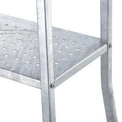 Poolse eik. Stalen fittingen, gegalvaniseerd. Gemaakt in Polen. Hoogte 87 cm, breedte 56,5 cm, diepte 57 cm. Zithoogte 47,5 cm, zitvlak 45 × 38,5 cm. Vouwafmetingen 120,5 × 56,5 × 19,5 cm. Gewicht 5,1 kg.
