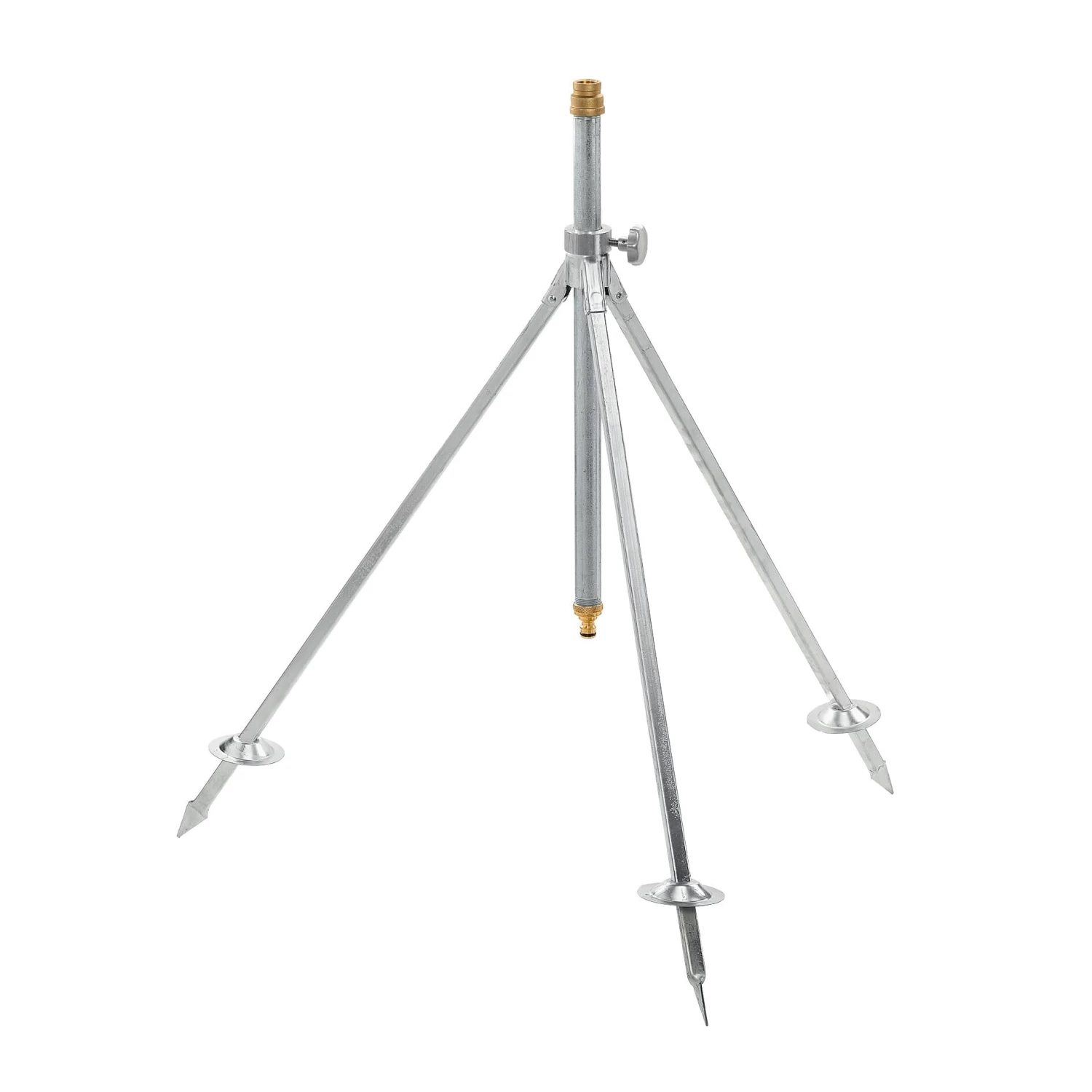 Een inklapbare standaard voor sproei-installaties met 1/2″ binnendraadaansluiting. De stalen platen op de drie insteekvoeten geven hem een stevig houvast in weide- en tuinland. De toevoerbuis (met een aanzienlijke wanddikte van 2,8 mm) is 43 cm in hoogte verstelbaar.