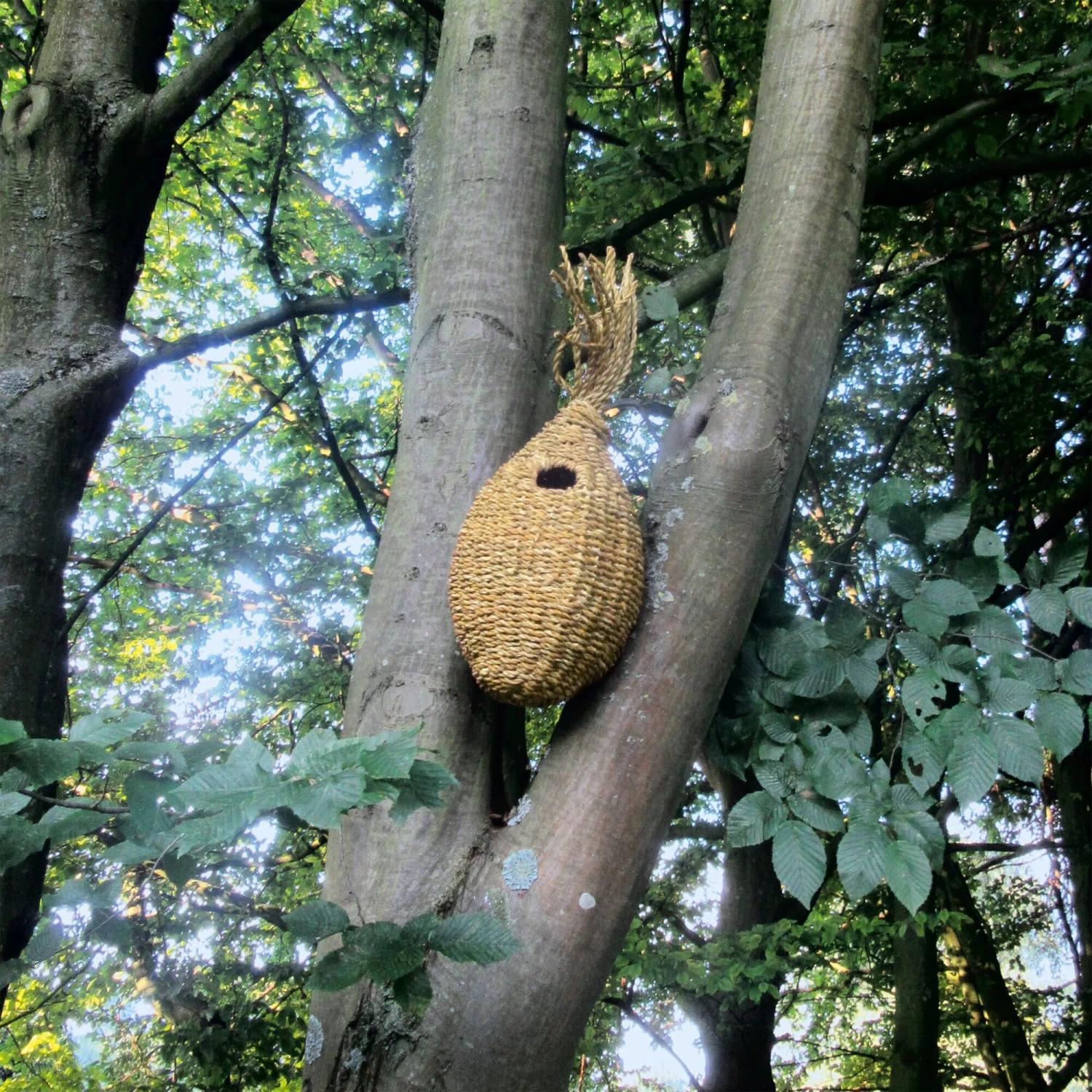 Eekhoorns zijn solitaire dieren. Gewoonlijk bezet een dier tot acht schuilplaatsen tegelijk en pendelt tussen de verblijven, waarbij hij soms hier en soms daar slaapt of eet. De eekhoorn gebruikt de verschillende nesten ook om noten, vruchten en zaden in op te slaan voor zijn proviand. Het is daarom vaak niet gemakkelijk, vooral voor jonge dieren, om een territorium te veroveren, omdat de ouders alle geschikte plaatsen al voor zich opeisen. Vooral in nette, vooral goed onderhouden stadstuinen, waar de eekhoorn als culturele opvolger leeft, ontbreekt het aan goede schuilplaatsen. Grotere aaneengesloten bosgebieden in de buurt worden meestal opgeëist door de bosbouw en kunnen niet altijd beschutting bieden. Dit maakt het des te meer de moeite waard om een eekhoornren in uw eigen tuin op te hangen en de buurtdieren een nest- of slaapplaats te bieden die zo dicht mogelijk bij de natuur staat. Deze ren is ook geschikt als schuilplaats voor grotere vogels en is gemaakt van onbehandeld rietgras dat rond een stevig metalen frame is gevlochten. Het komt uit een gecertificeerde fabriek in Bangladesh, waar dergelijk vlechtwerk traditioneel nog met de hand wordt gedaan. Het eekhoornhok gaat meerdere seizoenen mee (en de een of twee gaten in het vlechtwerk die na verloop van tijd ontstaan, kan de bewoner nog opvullen met zelf verzameld nestmateriaal). Hang de holte ongeveer 2,5-3 m hoog, verborgen in een boom. Om het hol aantrekkelijk te maken voor de dieren, is het raadzaam er vooraf geschikt voedsel in te doen.