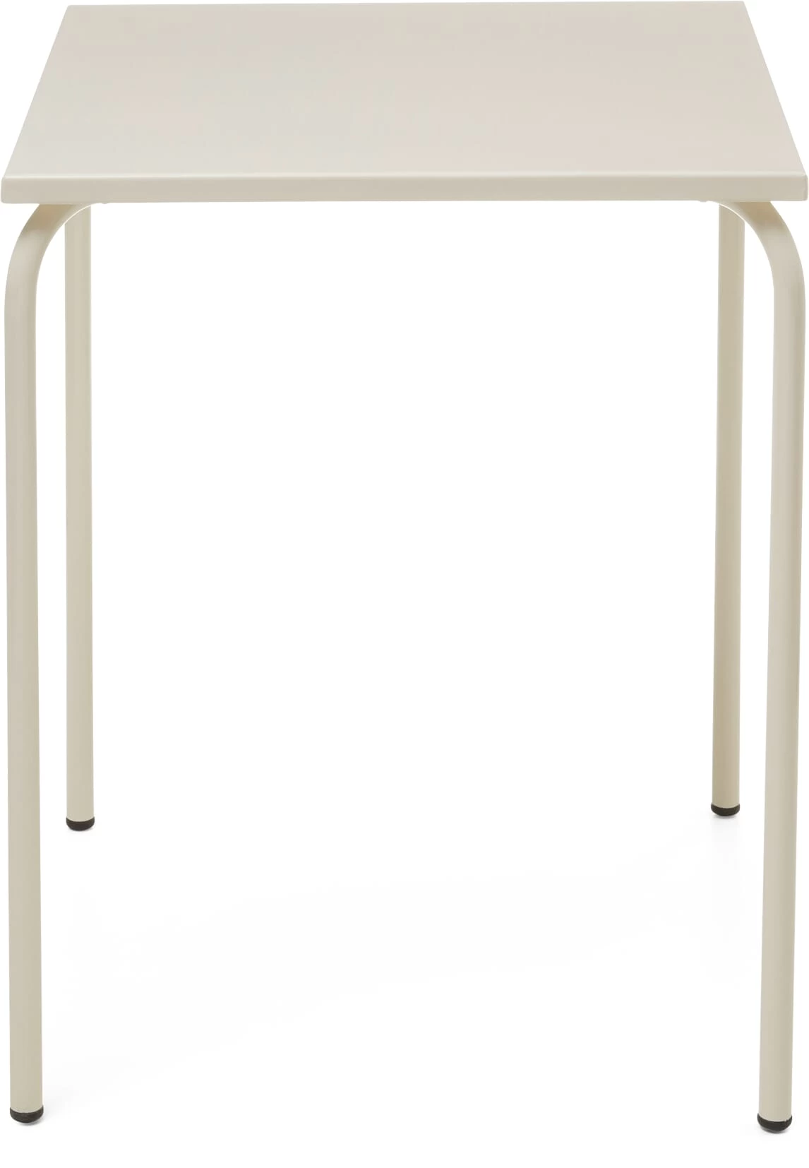 De kleine cafétafel voor de ESTORIL stoel. Klein oppervlak, stabiele standaard en stapelbaar in offset. Dit Portugese icoon wordt sinds de jaren vijftig geproduceerd en is niet meer weg te denken uit het publieke imago van Portugal. Het is gemaakt van staal, met poedercoating voor weersbestendigheid. In de selectie van aantrekkelijke kleuren verbergen de versies parelwit, duifblauw en lichtgroen een bijzonderheid: zij behoren tot de kleuren die de gemeenteraad van Lissabon heeft goedgekeurd als kleuren voor openbare zitplaatsen.