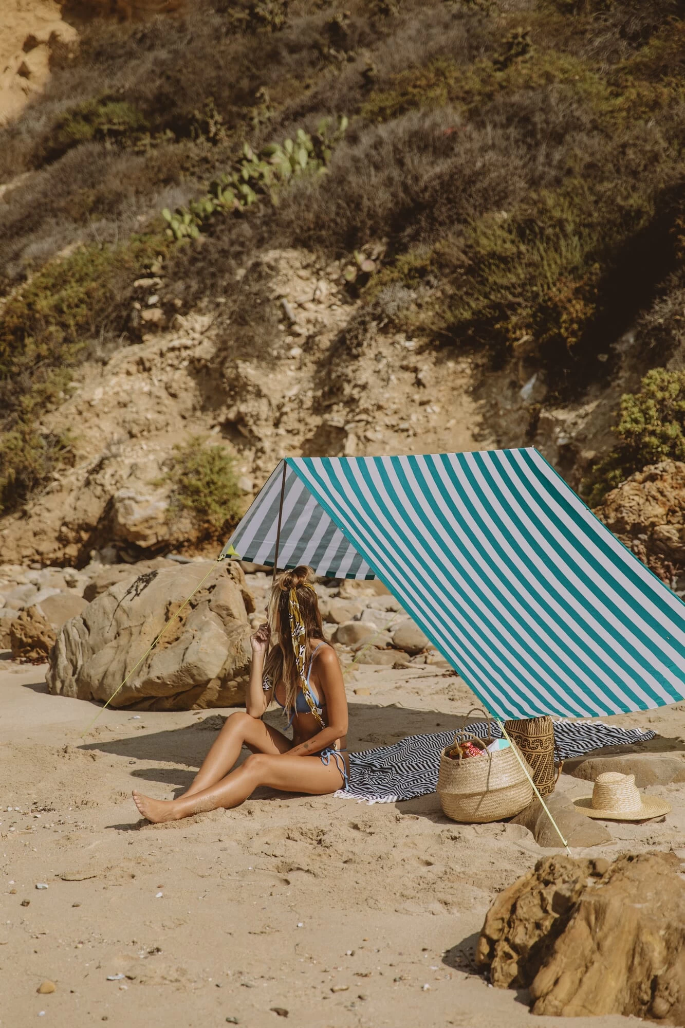 Een veelzijdig zonnescherm dat snel bij de hand is. De MIASUN kan in een klein formaat worden opgevouwen en opgeborgen en in een paar stappen worden opgezet. Opgesteld in drie verschillende versies, biedt MIASUN tot 3 m² schaduw. De wasbare stof met UV-bescherming filtert meer dan 96% van de UVA- en UVB-stralen.