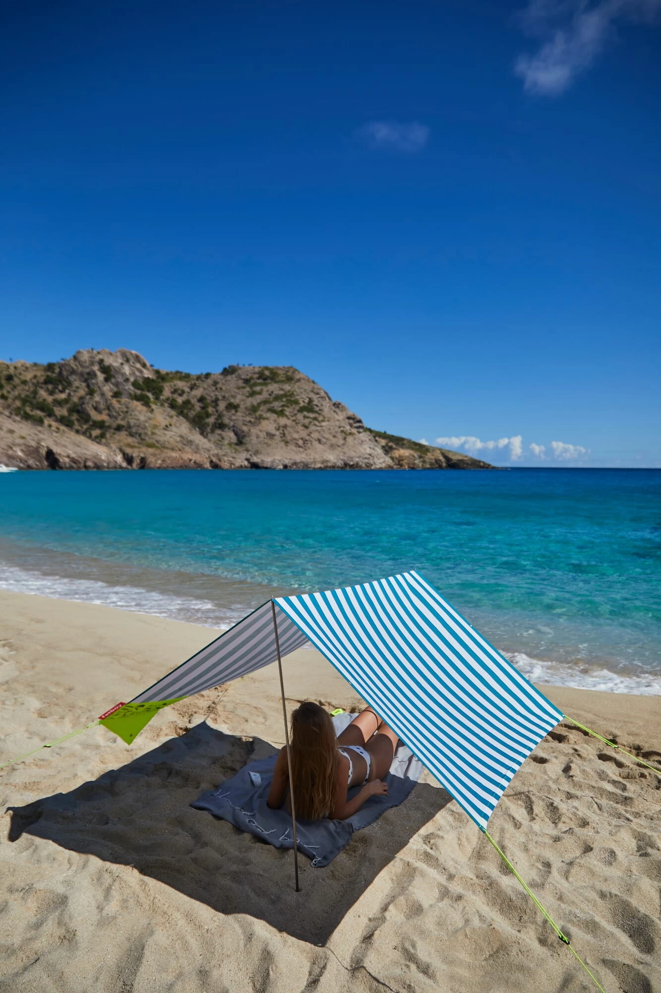 Afmetingen: B 330 × D 190 × H 140 cm (incl. touwen), Tentdoek: B 150 × D 220 cm, Opgevouwen: B 40 × D 18,5 × H 3,5 cmGewicht: 1,2 kgMateriaal: Gaas: 100 % katoen, Palen: Aluminium, Pinnen: Roestvrij staalDesign: Valériane Voirin en Hortense Pontabry