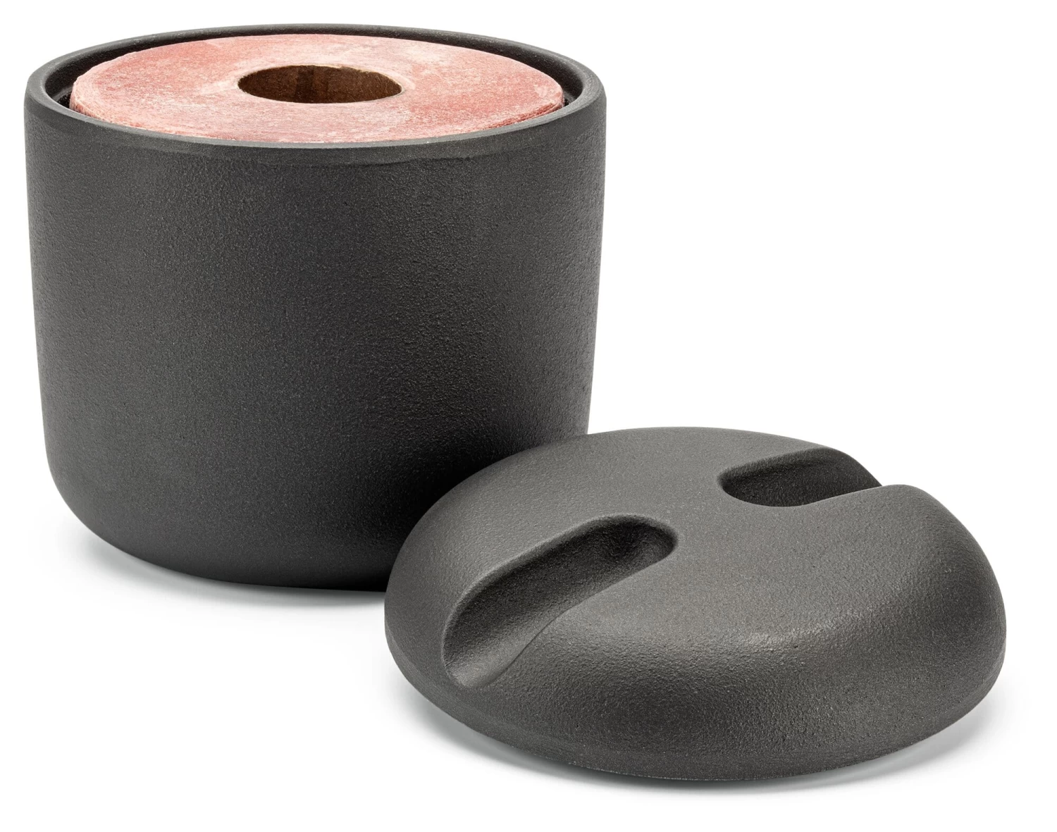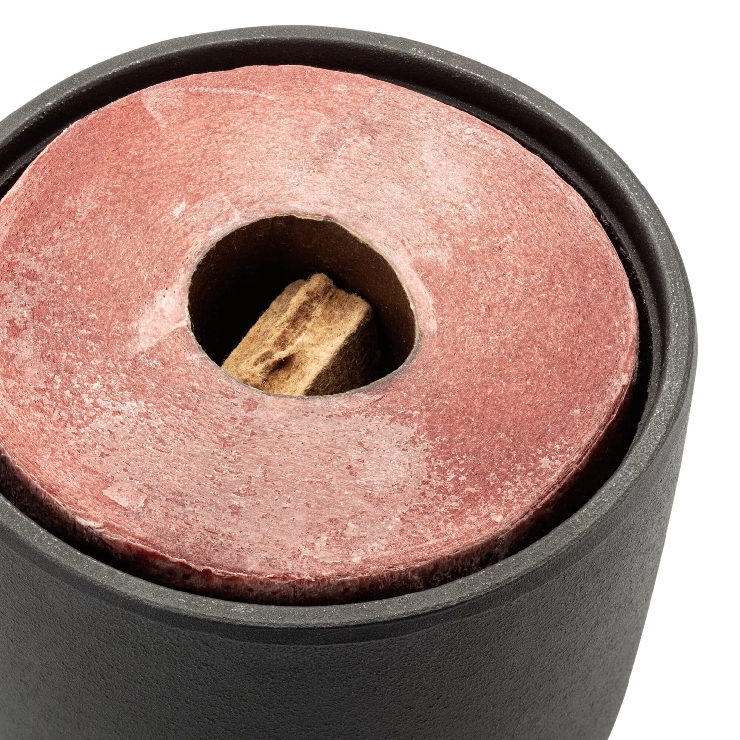 Het principe is eenvoudig: een weelderige, indrukwekkend zware gietijzeren pot bevat een in was gedrenkte rol papier. Een rol toiletpapier, om precies te zijn, die in een mum van tijd kan worden aangestoken met behulp van de bijgeleverde aanmaakhulpmiddelen. Afhankelijk van de wind en de weersomstandigheden duurt het ongeveer twee tot vier uur voordat het waspapier volledig is opgebrand. De eenvoudig mooie, gietijzeren vuurpot is gemaakt in een ijzergieterij in Oost-Friesland en wordt geleverd met een bijpassend, stevig deksel dat er stevig op geplaatst kan worden om de vlam te doven (en te beschermen tegen vuil binnenin). Plaats deze tuinfakkel altijd op een stevige ondergrond, niet op tafel. Alleen buiten gebruiken. U kunt bij ons vervangende verlichtingshulpmiddelen krijgen onder artikelnummer 50350, en u kunt gemakkelijk zelf rollen waspapier maken van toiletpapierrollen en restjes was.