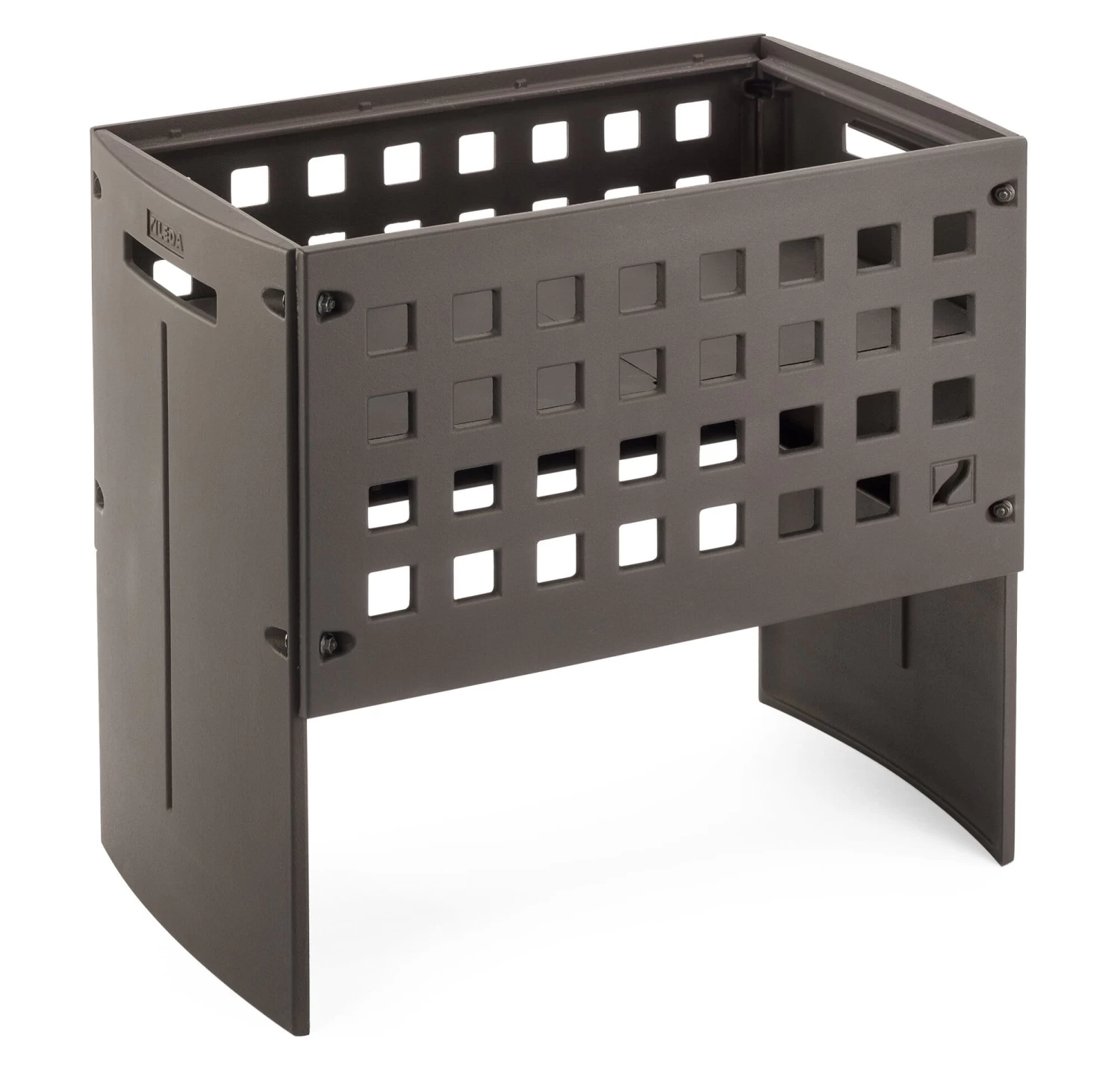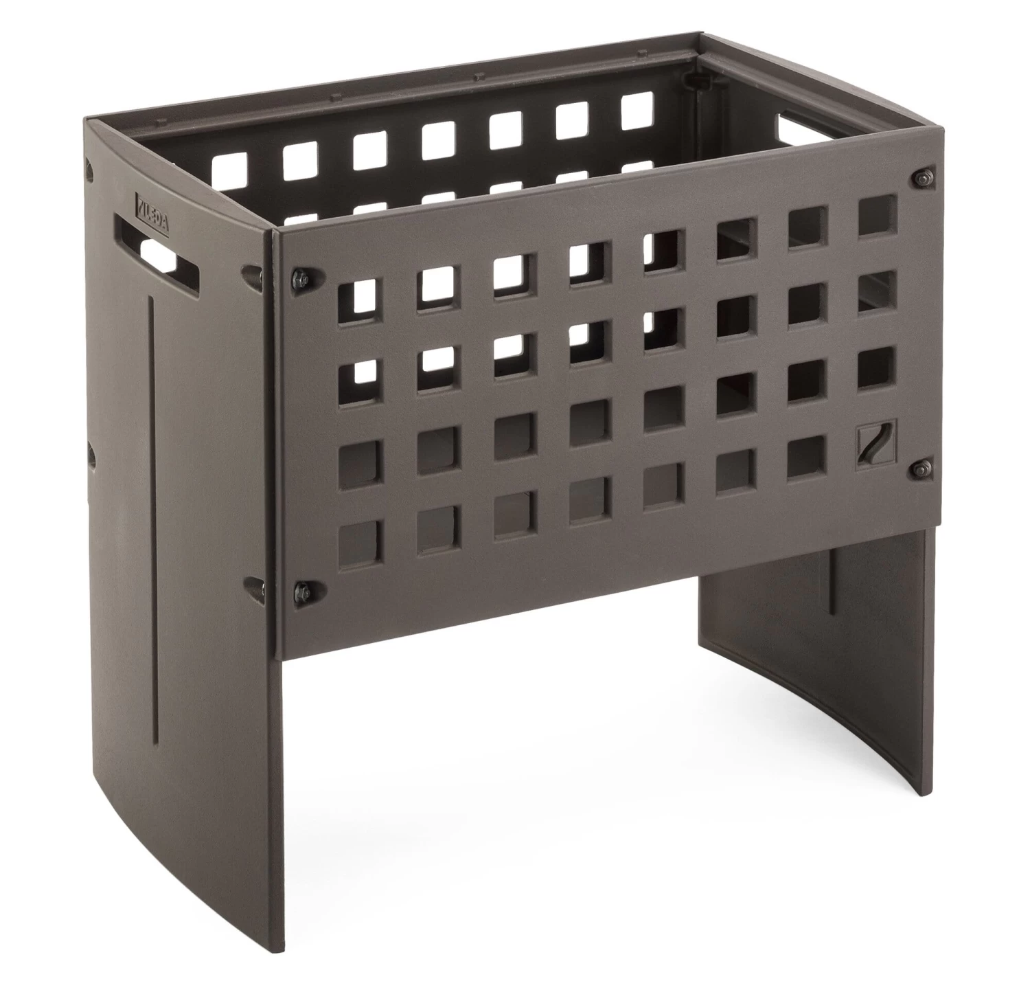 Van LEDA in Oost-Friesland: Een gietijzeren vuurkorf, diepbraun gelakt en met zijn gewicht van 40 kg enorm stabiel, waarin u twee meegeleverde gietijzeren platen plaatst. In de laagste stand kunt u dan de mand met houtblokken stoken – een flakkerend, knapperend kampvuur voor tuin en terras. Als u de platen in de middelste stand zet, kunt u ook houtskool gebruiken en wordt de vuurkorf een barbecue, die al geschikt is voor het bereiden van aardappelen in de schil of brood op stokjes. Maar u kunt er ook een “echte” grill van maken door geschikte grillroosters aan te schaffen en de daarvoor bestemde bovenste steun te gebruiken: De afmetingen van de korf komen overeen met een formaat waarvoor de handel verschillende geschikte roosters aanbiedt. Hiervoor hebben wij als accessoire een voedselveilige geëmailleerde plaat waarop u mager vlees, vis of groenten kunt bereiden of een kookpot kunt plaatsen.
