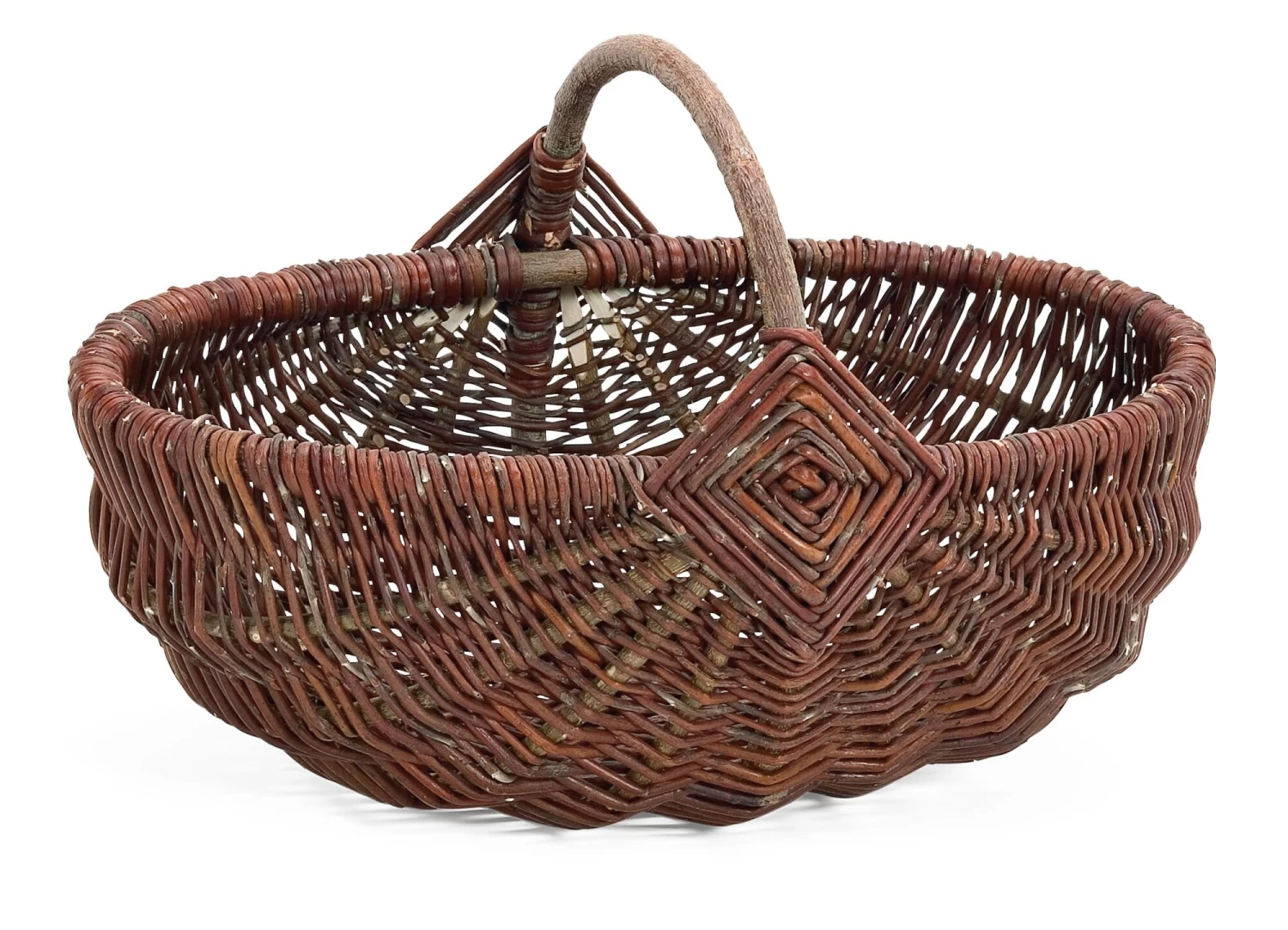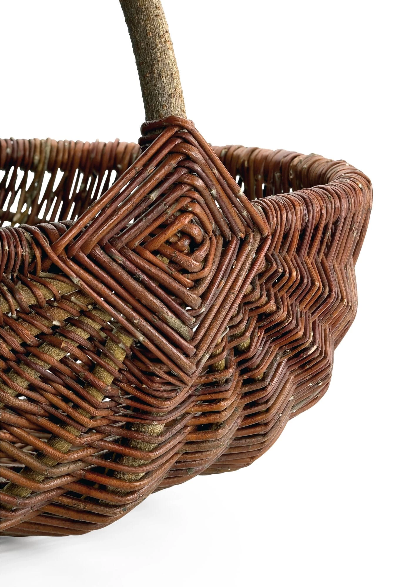 Veelzijdige steelmanden voor diverse doeleinden: als winkelmandjes, voor het oogsten en vervoeren in de tuin, voor het plukken van paddenstoelen en nog veel meer. Een bijzonder kenmerk van deze handgemaakte manden is het “Japanse oog”: een uitgebreide weeftechniek die het handvat op een zeer mooie en duurzame manier met het lichaam verbindt.