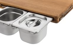 Vetra maakt deze ongevoerde jas van een donkergroene katoenen stof met een goede grip. De snit met de twee grote opgestikte zakken, de opgestikte borstzak en een binnenzak doet denken aan een traditioneel werkjasje. De koperkleurige metalen knopen vormen een harmonieus contrast met de stof.