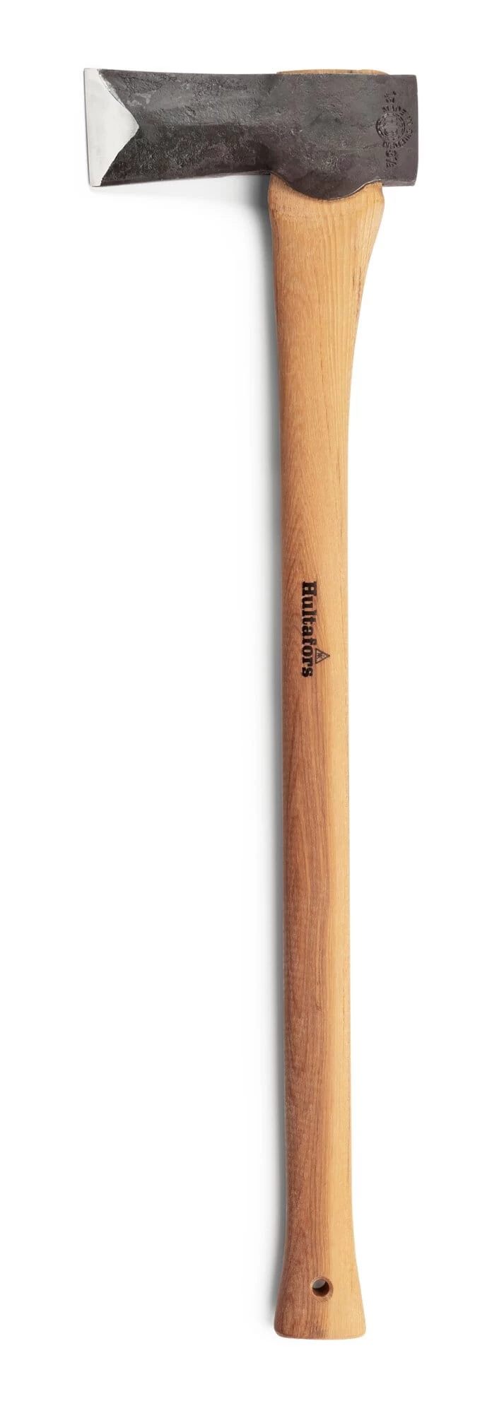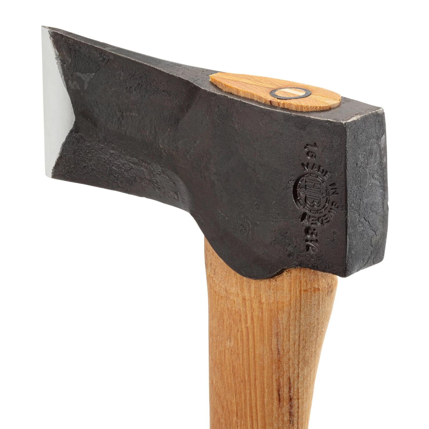 Gemaakt in Zweden. Handgesmede kop van Zweeds kwaliteitsstaal met gehard lemmet, handvat van hickoryhout. Bladlengte 7 cm, totale lengte 75 cm. Gewicht 2 kg. Een chroomgelooide waterbuffelleer lemmetbeschermer is inbegrepen.