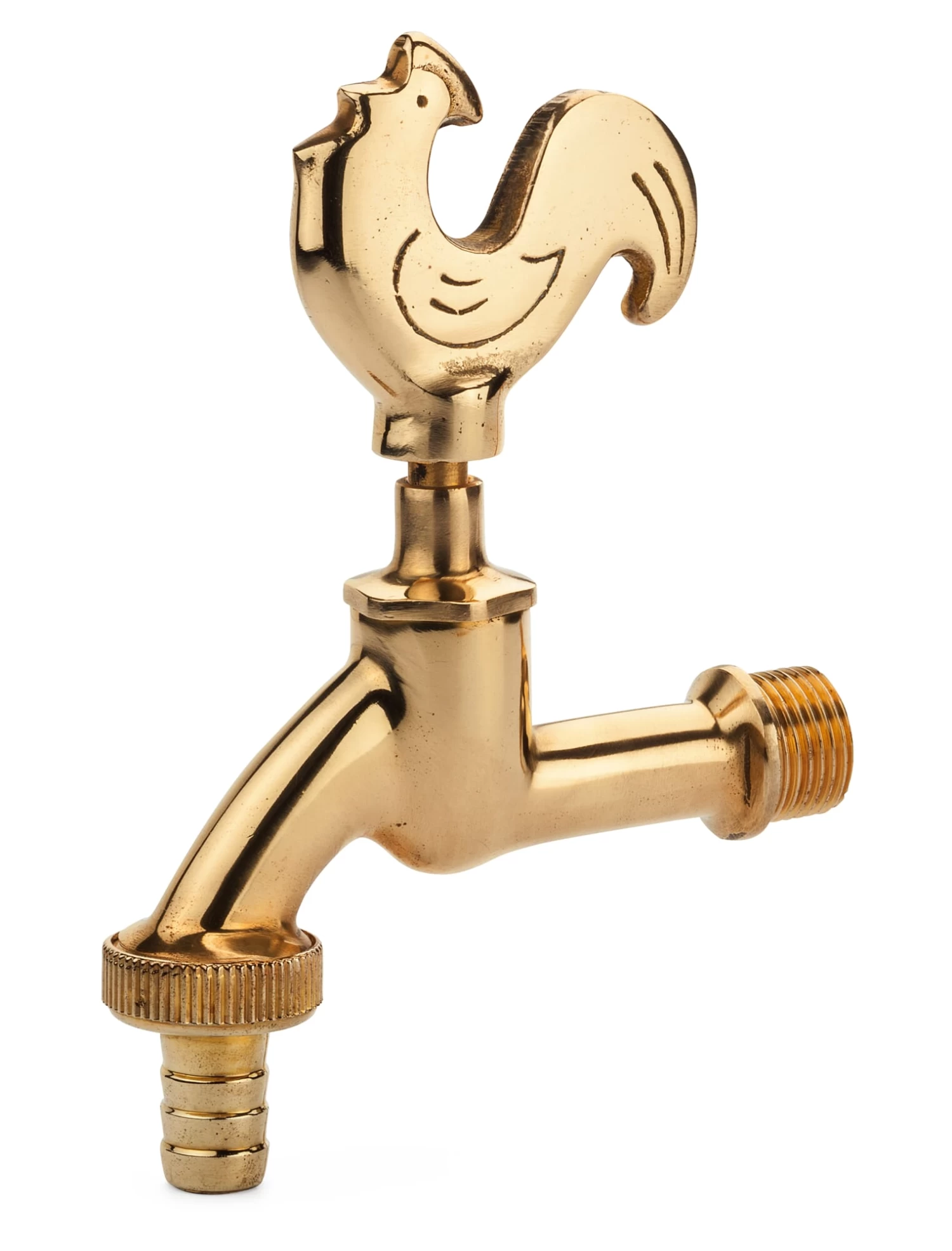 Gemaakt van massief gegoten messing. Met 1/2″ buitendraad voor wandmontage en 3/4″ buitendraad bij de uitloop. Een bijpassende kunststof slangaansluiting wordt meegeleverd. Hoogte 15 cm, breedte 5,8 cm, uitsteeksel (gemonteerd) 9,2 cm. Gewicht 330 g.