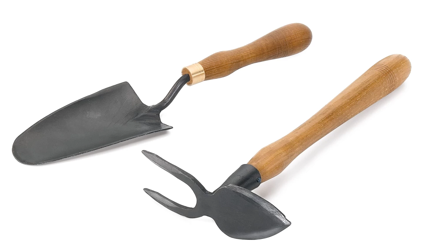 Er was een tijd dat gereedschap niet alleen van uitstekend materiaal werd gemaakt, maar ook met veel zorg werd versierd. Op zoek naar zulk functioneel én mooi gereedschap, struinden we oude voorraden af met een verzamelaar van historisch tuingereedschap. Het resultaat van dit werk: een handschop en een handschoffel, voor ons gemaakt naar historisch model bij de gereedschapssmederij Sneeboer in Noord-Holland. De gereedschapskoppen zijn van gesmeed en gewaxt koolstofstaal, de handvatten van essenhout behandeld met lijnzaadolie. Bij de schop worden de koppen vastgehouden door een messing huls; de iets langere steel van de schoffel wordt omsloten door een stevige dichtingsring. Dit soort tuingereedschap werd nog tot in de jaren 1930 in Engeland gemaakt.