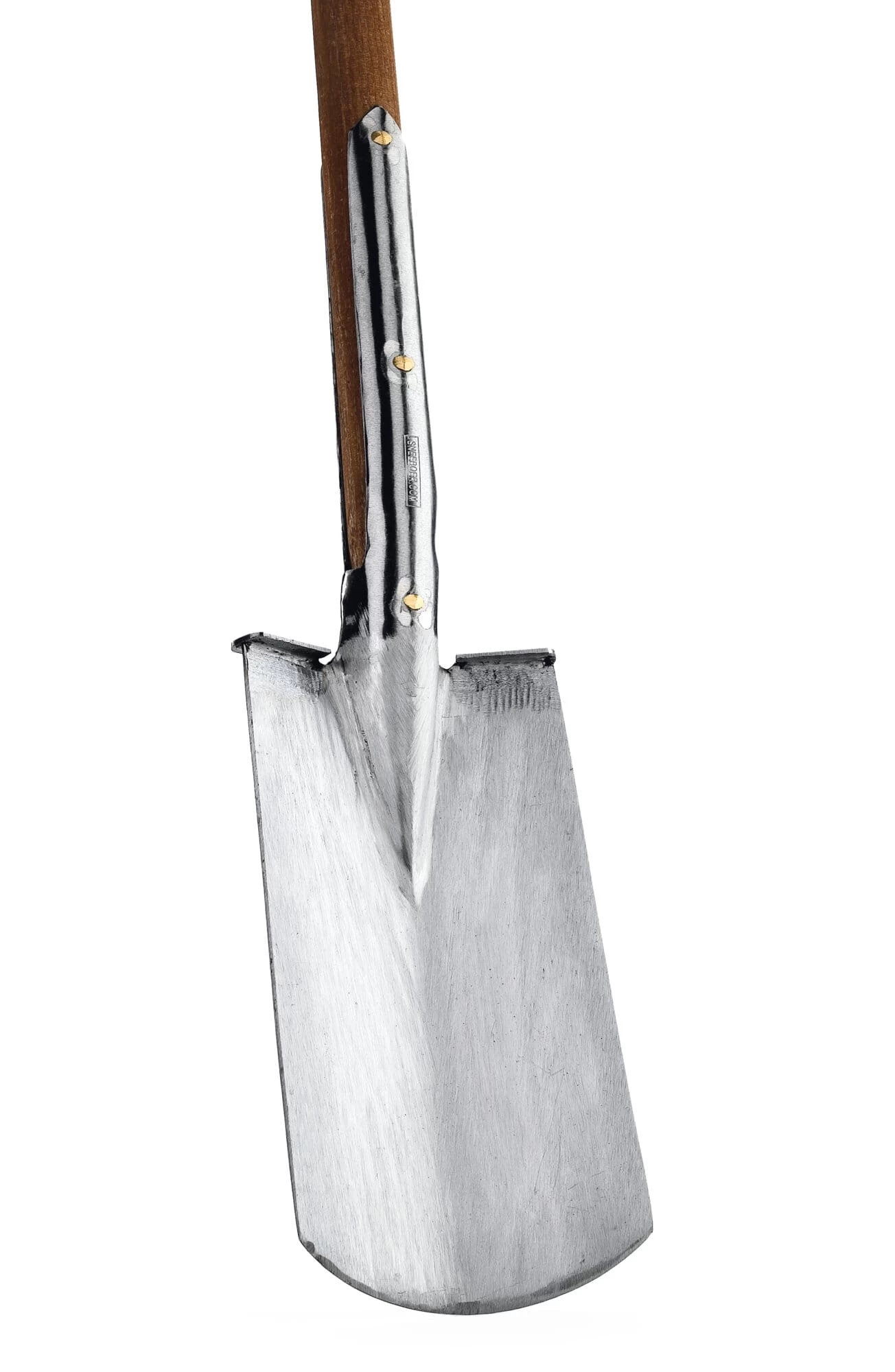 Onze tuinschop is het perfecte voorbeeld van hoe we goede dingen nog beter kunnen maken. Let op details als de verlengde tuit die met messing klinknagels is vastgezet en het handvat van geolied essenhout. De gereedschapskop is handgesmeed.
