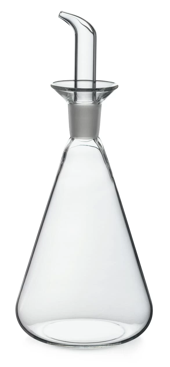 Borosilicaatglas – oorspronkelijk een speciaal glas voor de optische en chemische industrie, ontwikkeld in 1891 in de glasfabriek van Ernst Abbe en Otto Schott in Jena, Thüringen – maakte een ongekende triomftocht door de wereld. De ontwerpers van het nabijgelegen Bauhaus in Weimar waren gefascineerd door het idee van laboratoriumglas in de keuken. Zij gaven het nieuwe materiaal zijn hedendaagse vorm en vonden er nieuwe toepassingen voor. De olie- of azijnfles, bijvoorbeeld, toont nog steeds zijn oorsprong in het laboratorium.