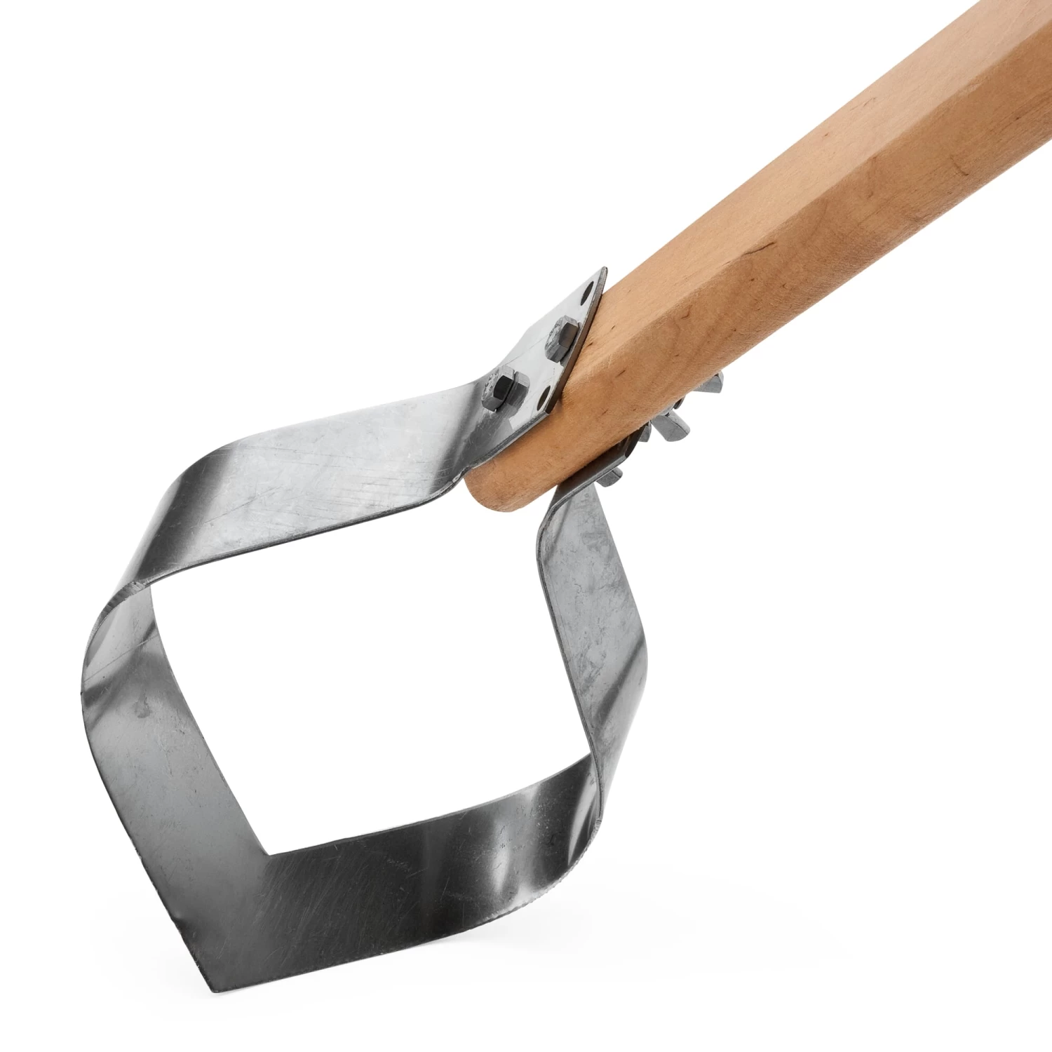 Deze zogenaamde platte frees is ook een zeer veelzijdig tuingereedschap. Als het blad bijvoorbeeld naar de grond wijst, wordt het gebruikt voor grondig losmaken en schoffelen, en zelfs groter geworden onkruid kan dan gemakkelijk worden verwijderd. Als het blad 180° wordt gedraaid, kan het gereedschap worden gebruikt als een “schop”, d.w.z. een duwschoffel die van het lichaam af over de grond wordt geduwd en waarmee ondiep wortelend onkruid bijzonder krachtig kan worden aangepakt. Wildgroei of groter onkruid kan in een zijwaartse beweging worden “gezeefd”, minder hardnekkig, ondiep wortelend onkruid kan zonder veel moeite worden ondergraven (bovengrondse plantendelen kunnen worden achtergelaten als organische meststof). Voor het ophogen van groenteplanten wordt het blad 90° gedraaid, zodat het lange snijvlak vlak ligt.