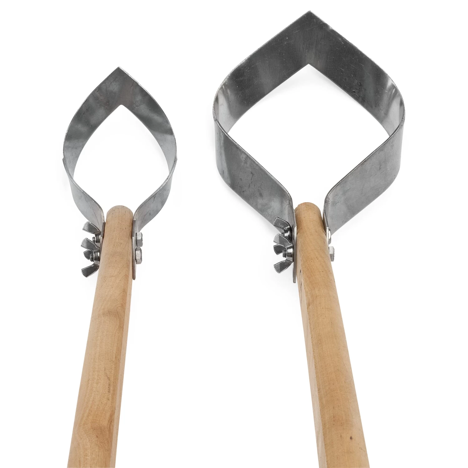 Wij bieden de vlakke snijder in twee versies aan. In de bredere versie kan het blad in drie verschillende hoeken worden gezet, zodat de positie ook aan de lengte van de gebruiker kan worden aangepast. Ook de vorm van het berkenhouten handvat draagt bij tot vermoeidheidsvrij werken. Het is rechthoekig, niet rond, en gemakkelijk vast te pakken.