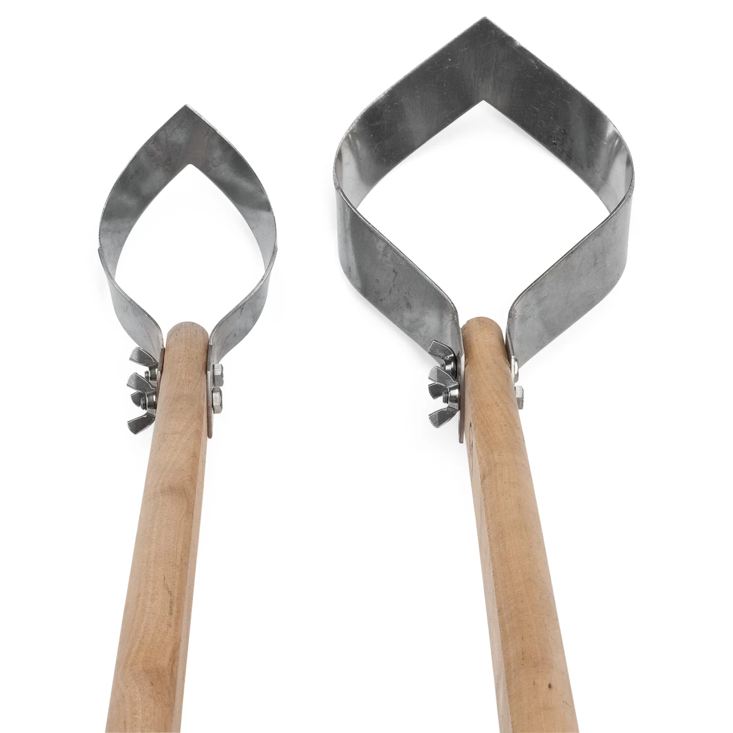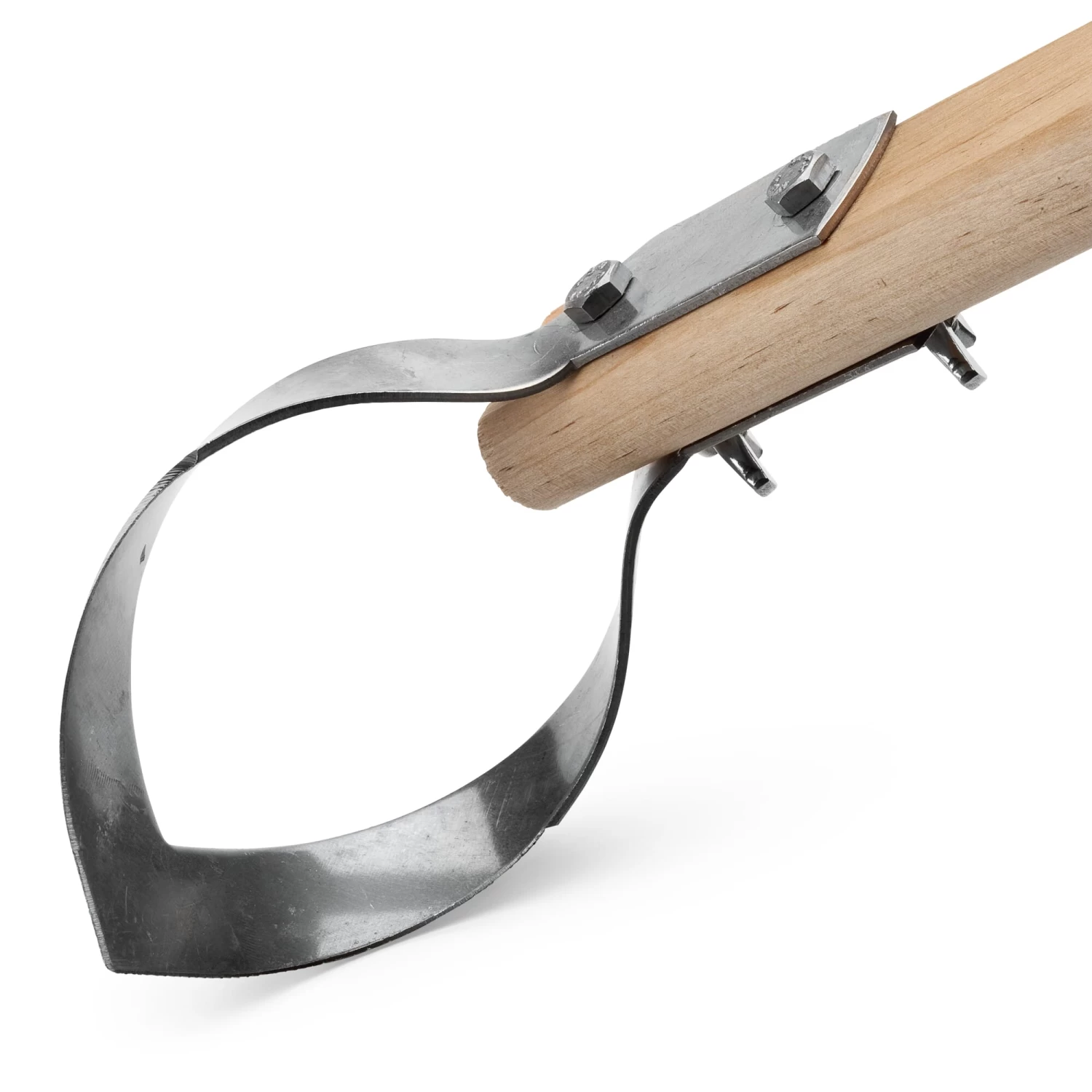 Wij bieden de vlakke snijder in twee versies aan. In de bredere versie kan het blad in drie verschillende hoeken worden gezet, zodat de positie ook aan de lengte van de gebruiker kan worden aangepast. Ook de vorm van het berkenhouten handvat draagt bij tot vermoeidheidsvrij werken. Het is rechthoekig, niet rond, en gemakkelijk vast te pakken.