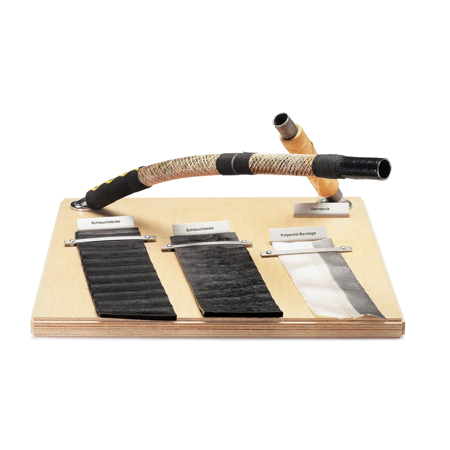De zwarte slang met de gele golvende lijn – de beroemde gouden slang – wordt op zeer arbeidsintensieve wijze vervaardigd: De zogenaamde ziel van de slang is van rubber en wordt rechtstreeks op een doorn geëxtrudeerd. Deze basisslangstructuur wordt omwikkeld met een sterk koord, opnieuw bedekt met een rubberen hoes en versterkt met textielband. De daaropvolgende vulkanisatie verzegelt alle lagen tot een homogene slangwand die knik- en slagvast is en ook bij wisselende temperaturen een drukbelasting tot 30 bar aankan. Goldschlange slangen zijn sinds 1930 de onbetwiste kwaliteitsreferentie voor de industrie, landschapsarchitecten en veeleisende tuinbezitters. Rubberen slangen zijn duur, de Goldschlange is nog duurder. Maar terecht, want het zal de laatste slang zijn die je koopt.