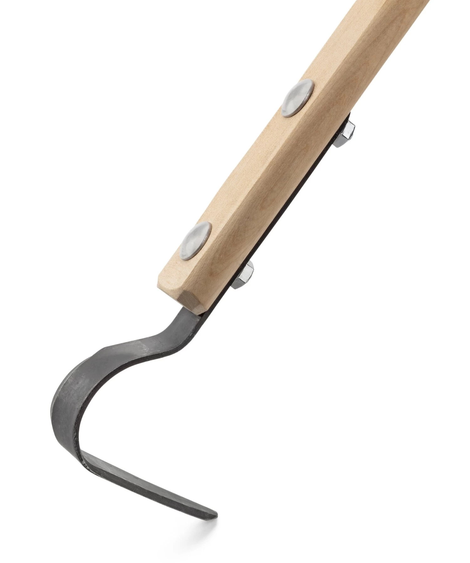 Wat (groente)tuiniers echt nodig hebben: een werktuig om de grond te bewerken waarvan het lichte gewicht het mogelijk maakt om lange tijd aan één stuk te wieden zonder ongemak. De combinatie van een extra geslepen stalen blad en een gereedschapskop die al met al zo smal is dat de grond grondig kan worden losgemaakt, zelfs als de planten dicht bij elkaar staan, resulteert in dit wiedmes, dat we eigenlijk uit Rusland halen, het grote land van de zelfvoorziening. Het handvat is gemaakt van berkenhout en de kop van het gereedschap wordt op zijn plaats gehouden door twee stevige schroeven.