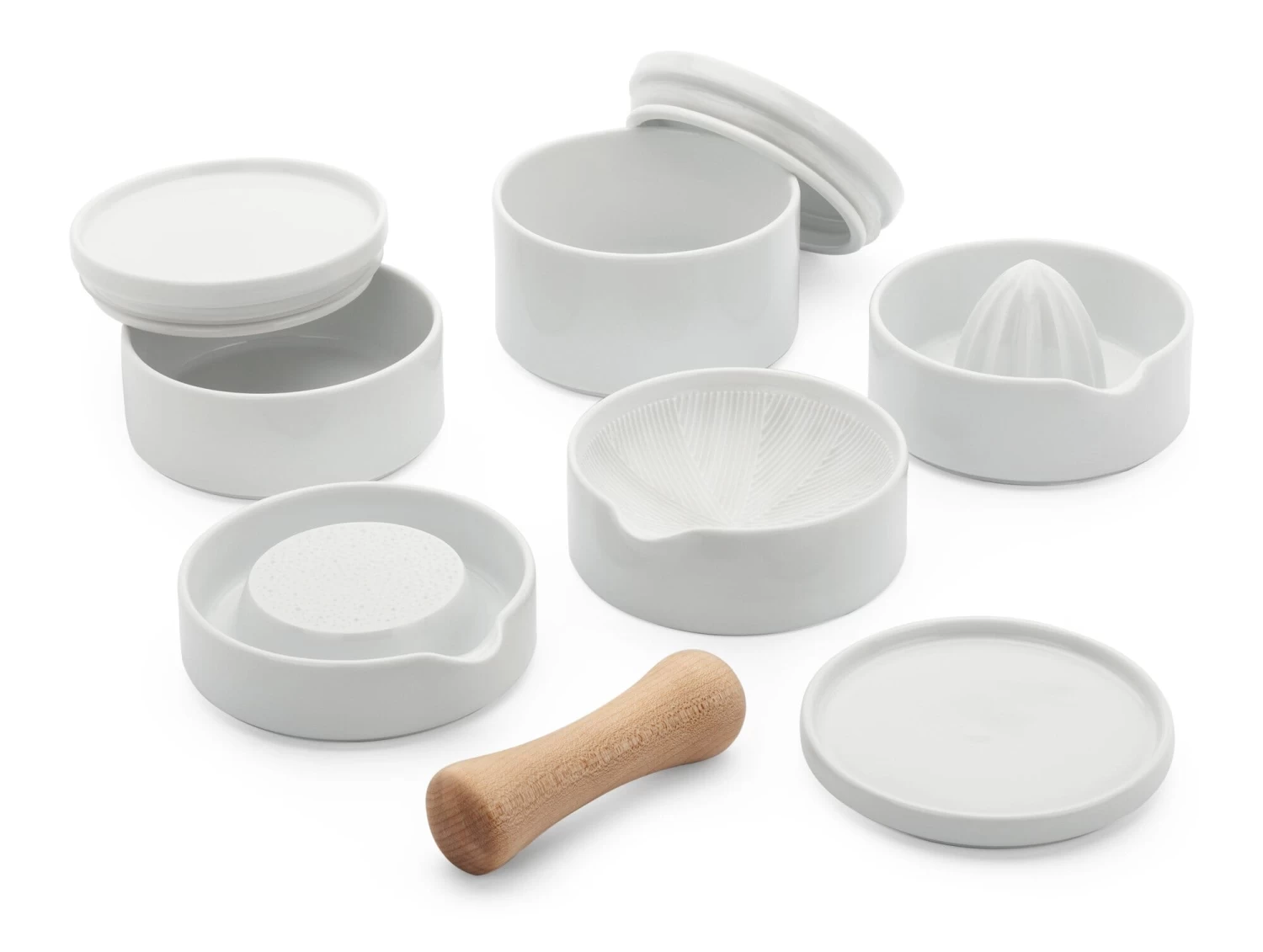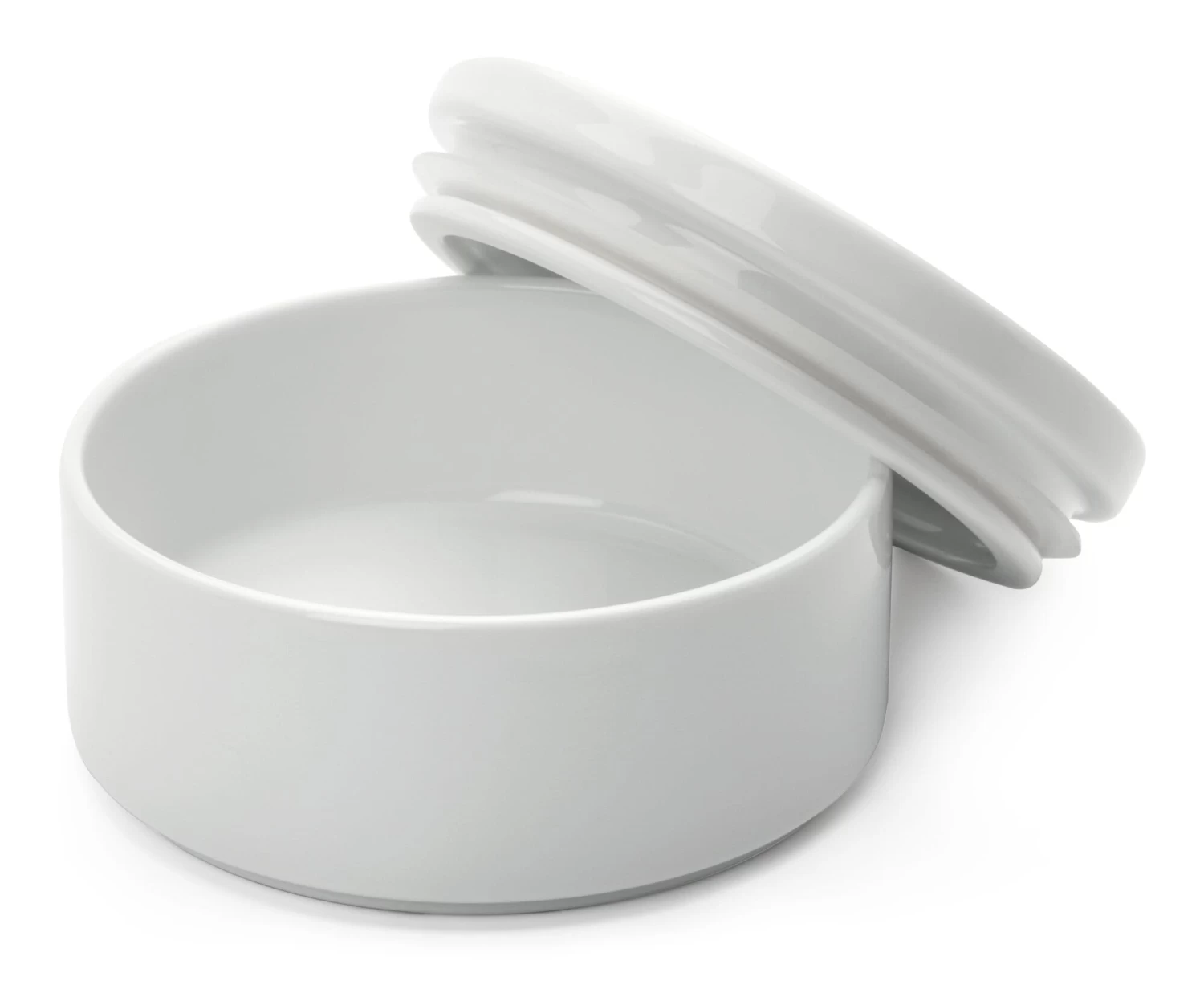 Wit hard porselein. Bijvoorbeeld om het stukje verse gember te raspen of de kruiden te pletten. Bij elke pot wordt een bijpassend porseleinen deksel met een omlopende afsluitring geleverd. Kan in de vaatwasser gereinigd worden. Gemaakt in Japan.