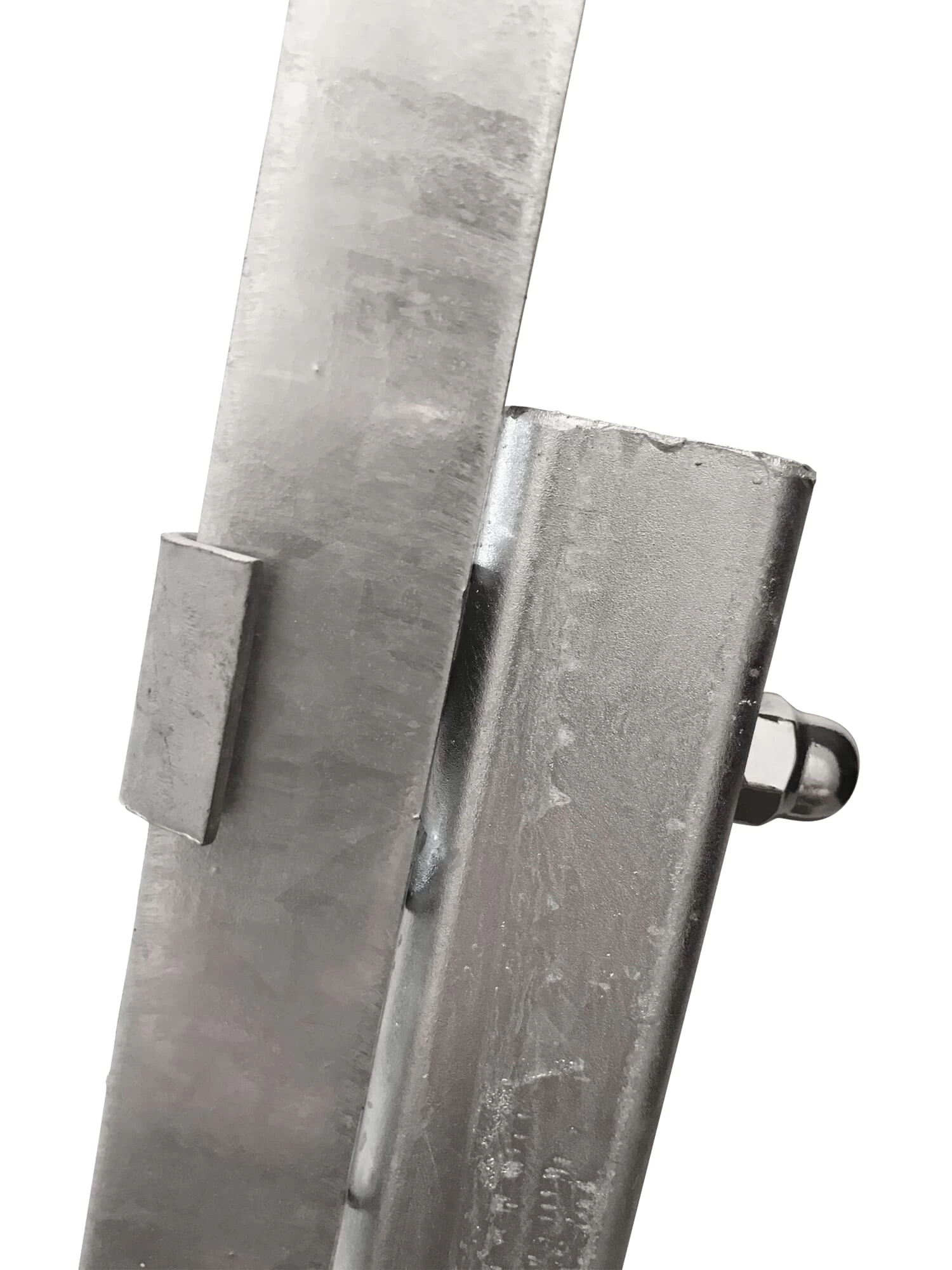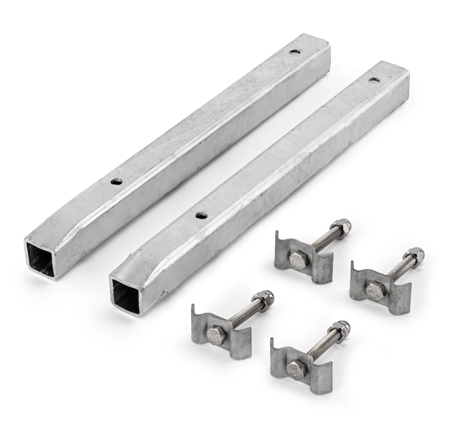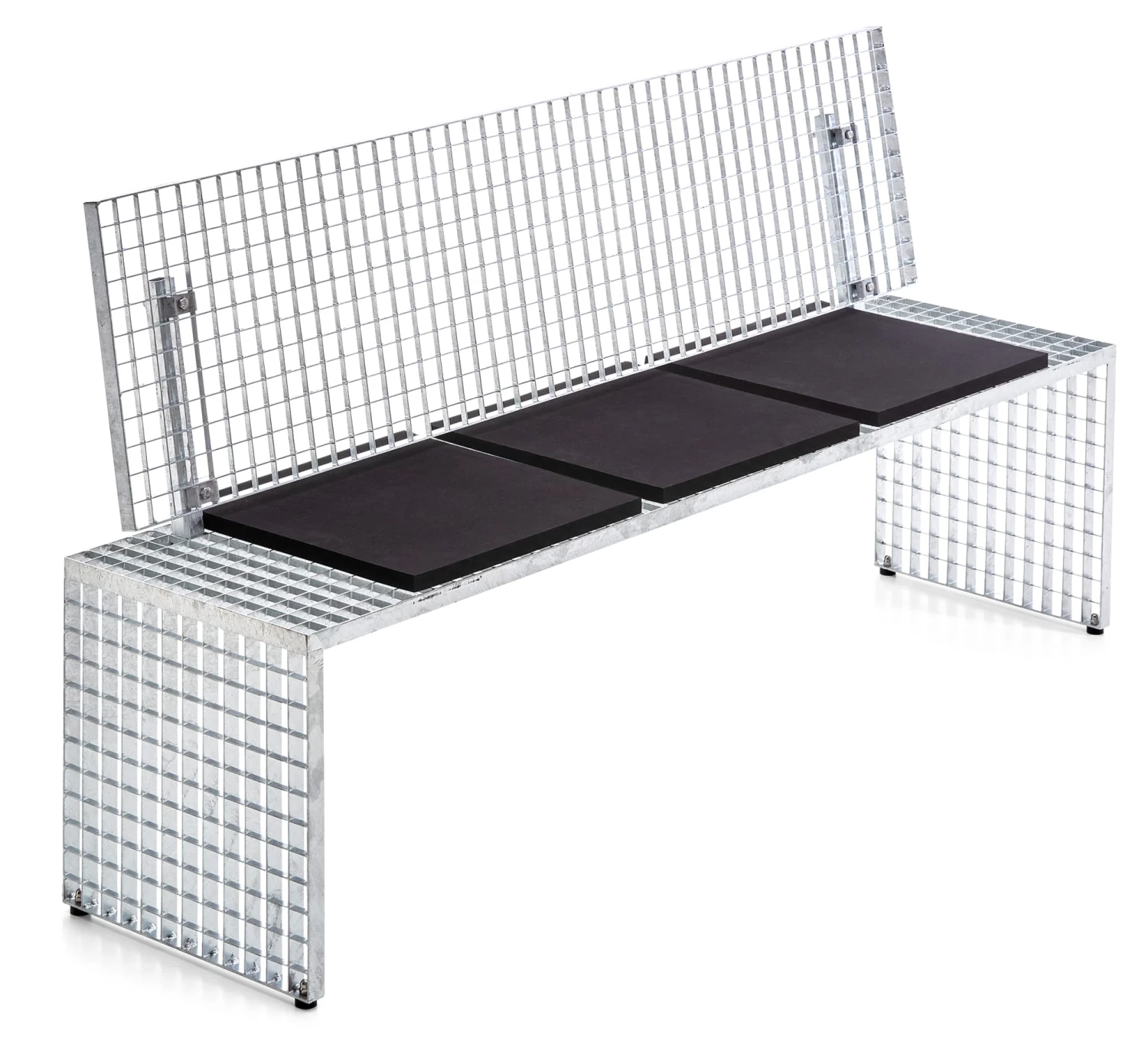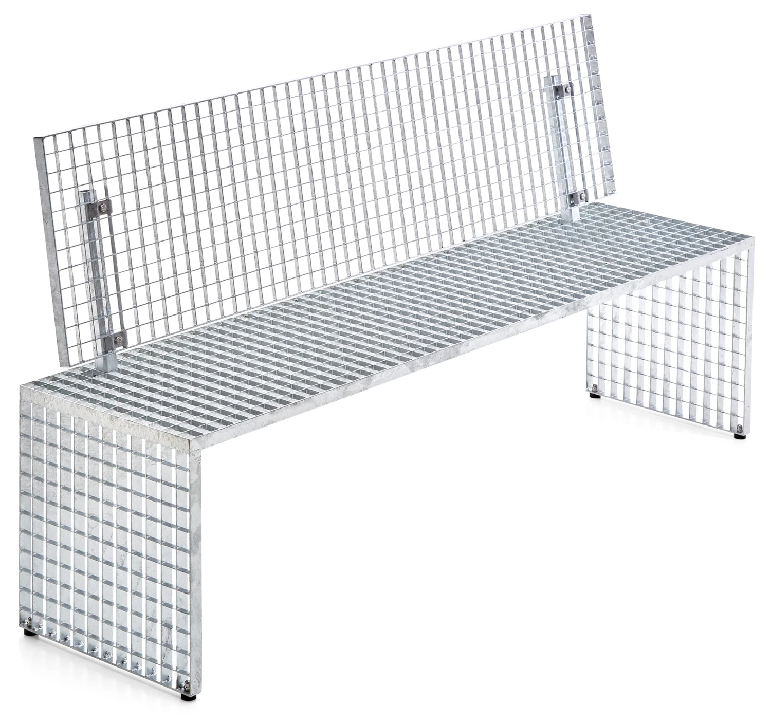 Twee vierkante buizen, licht geslingerd, vier beugels en vier schroeven om de plank compleet te maken en te gebruiken als rugleuning voor SKWER. De rugleuning kan in elke SKWER-bank worden gestoken.