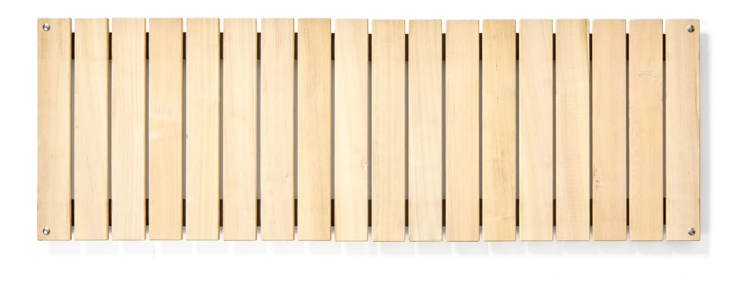 Deze steun voor tafels en banken SKWER is gemaakt van robinia, een weerbestendig hout dat vaak wordt gebruikt naast wijnstokken in de wijngaarden. Het hout is robuust en weerbestendig, zodat het het seizoen buiten kan doorbrengen. Dit tafel- en bankblad wordt in één eenvoudige stap op het gegalvaniseerde rooster van het basismeubel geplaatst, is in een handomdraai verwijderd en kan worden opgerold om ruimte te besparen. De houten lattenconstructie is verkrijgbaar in twee lengtes voor de SKWER. De opleg geeft de bank extra comfort en zorgt voor een uitnodigend tafelblad.