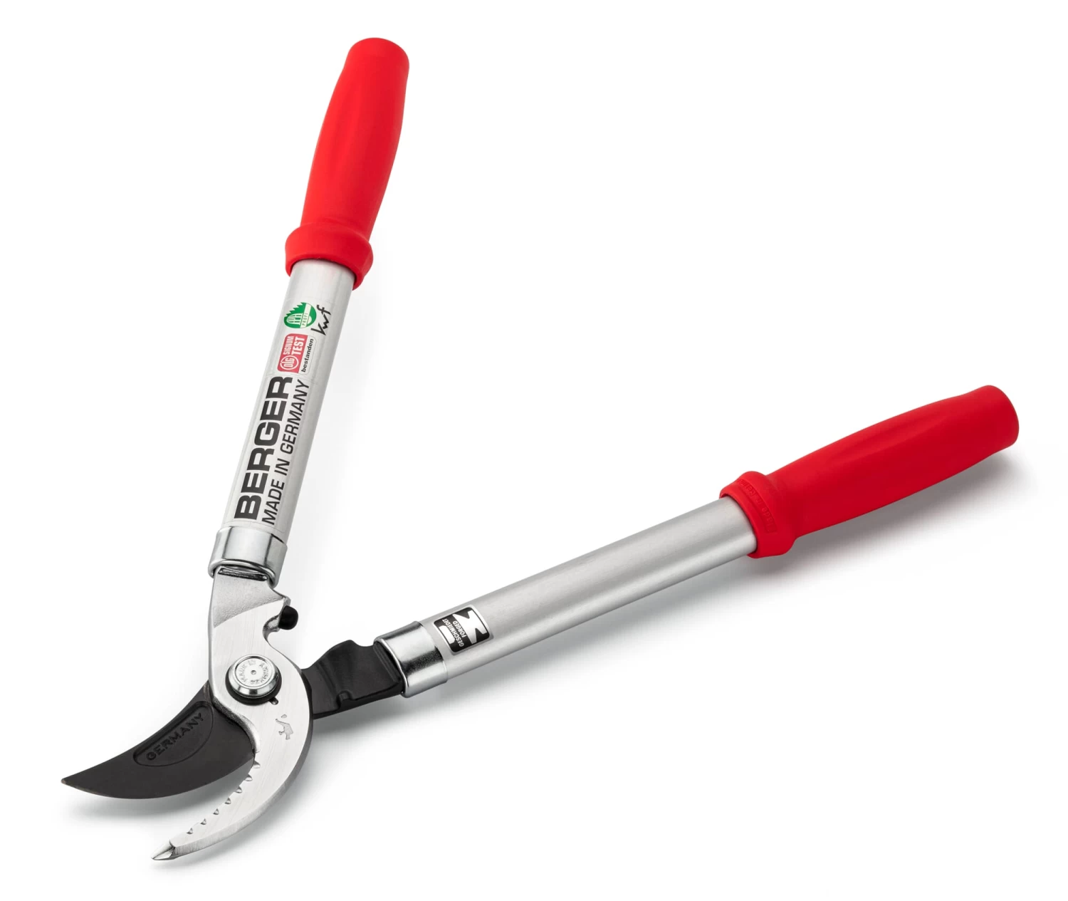 Er zijn momenten waarop niets wordt gespaard voor de tuinman – zelfs niet het hoofd in het struikgewas steken. Als u oude, dichte en misschien wat knoestige struiken en heesters in uw tuin hebt, weet u waar ik het over heb. Met de grote snoeischaar kom je er nauwelijks doorheen, en met de kleine snoeischaar wordt het uitdunnen van de overwoekerde planten al snel een Sisyfusarbeid. Hier komen de volgende snoeischaren van de specialist Berger in Wuppertal om de hoek kijken, waarvan de voordelen perfect tot hun recht komen bij dergelijke ingegroeide, scheve en kromme struiken. De verkorte handgrepen maken een gecontroleerde geleiding van het gereedschap mogelijk, zelfs op lastige plaatsen, en omdat ze gemaakt zijn van stevige aluminium buizen, kunnen ze nog steeds krachtig worden vastgepakt. De sterke schaarkop is gesmeed uit kwaliteitsstaal. De binnenkanten van beide messen hebben zelfs een ingesmeed oliereservoir, en om het gesneden materiaal steeds in de optimale snijpositie te kunnen houden, is het tegenmes voorzien van bevestigingsinkepingen.