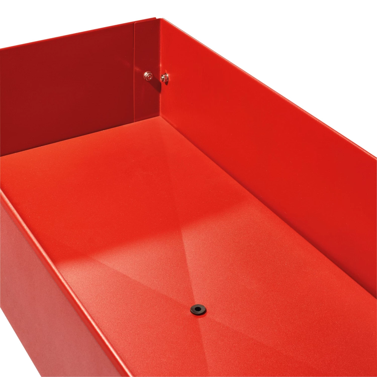 Het dienblad van dit verhoogde bed van gegalvaniseerd en gepoedercoat staal bevindt zich op een werkhoogte die geschikt is voor kinderen en waarmee ze zelfs hun eigen tuintje op het balkon of terras kunnen verbouwen. De bodem loopt iets af naar het midden, zodat overtollig water gemakkelijk kan weglopen – als u misschien heel royaal water hebt gegeven. Kinderen kunnen hun tuingereedschap, lege plantenpotten en een emmer tuinaarde of compost opbergen in de opbergruimte onder het verhoogde bed.