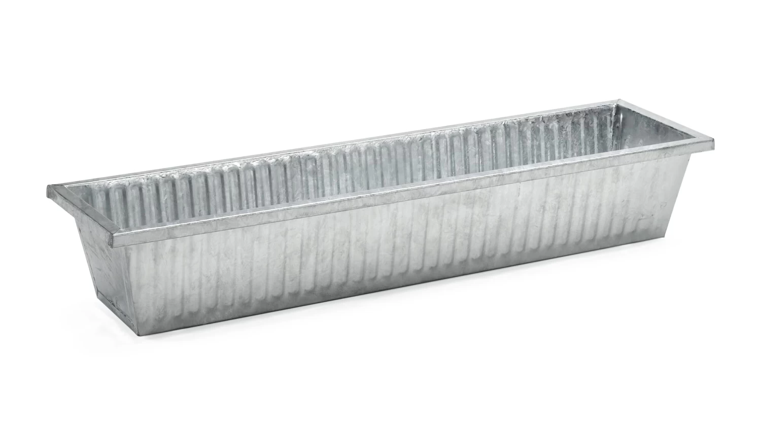 Gegalvaniseerd plaatstaal. Met twee waterafvoergaten. Gemaakt in Turkije.