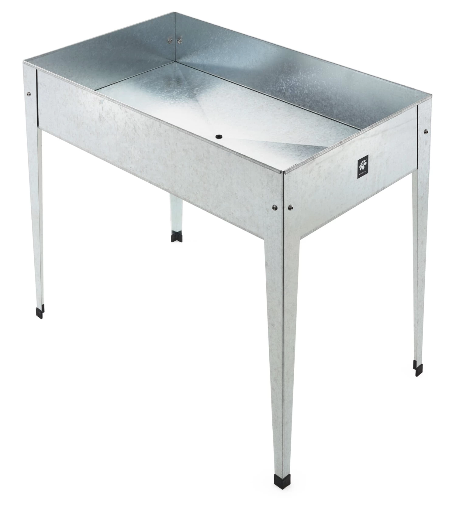 De bak van het verhoogde bed staat op een optimale werk- en oogsthoogte. De bodem loopt lichtjes af naar het midden, zodat overtollig water – bijvoorbeeld na een hevige regenbui – gemakkelijk kan weglopen, waardoor wateroverlast wordt voorkomen. Het rubberen inzetstuk in het midden, dat naar beneden is doorgetrokken, zorgt er ook voor dat het water in een eronder geplaatste bak kan weglopen. Er is ook voldoende opbergruimte onder het verhoogde bed voor lege potten, klein gereedschap, de gieter of de grondzak.