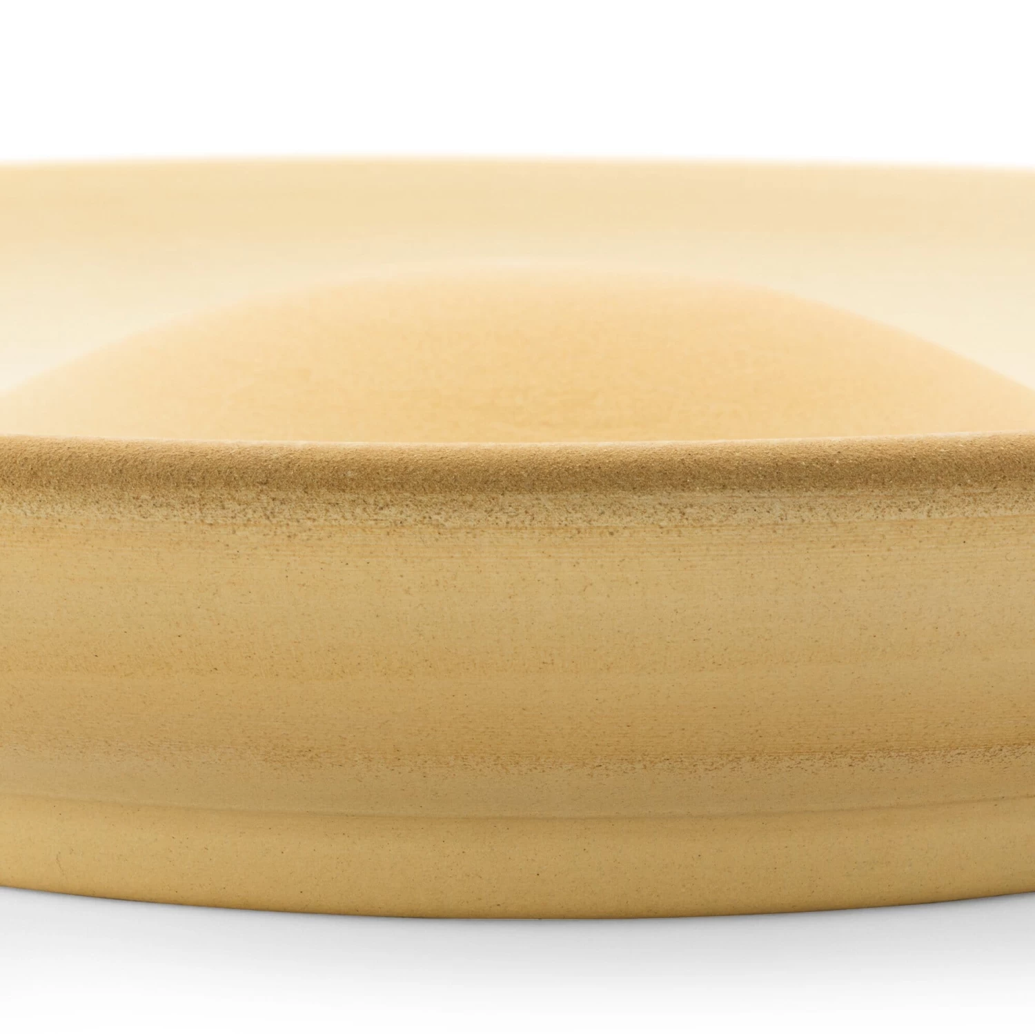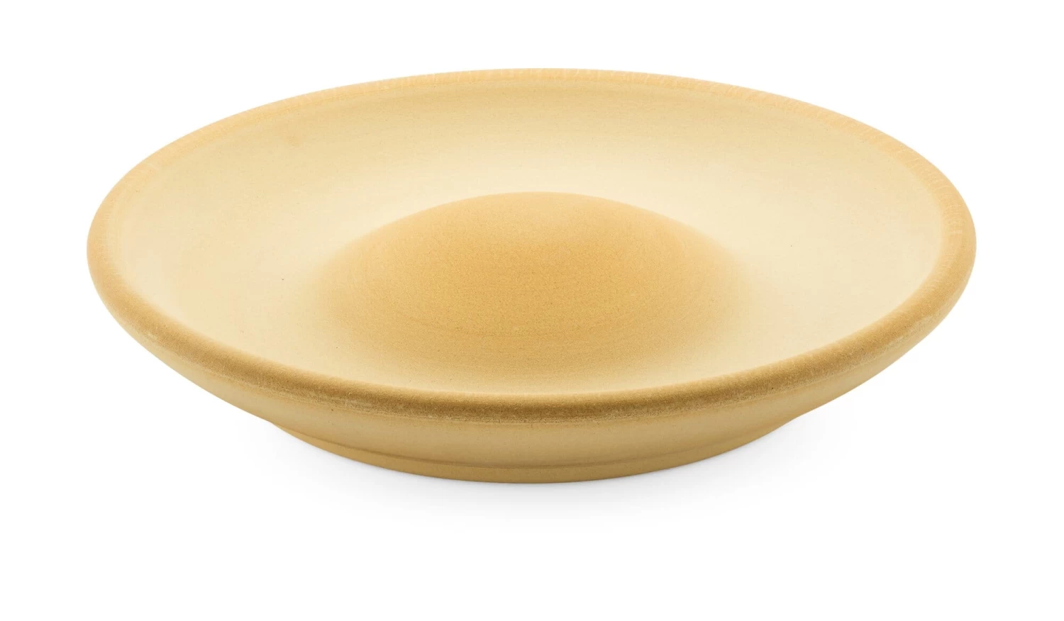 Volledig keramisch, ongeglazuurd. Handgemaakt in Duitsland. Inhoud 2 l. Ø 39 cm, hoogte 6,7 cm. Gewicht 5,1 kg.